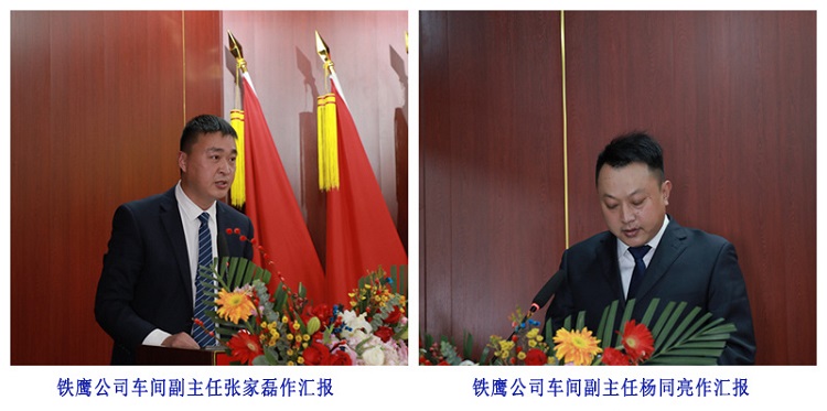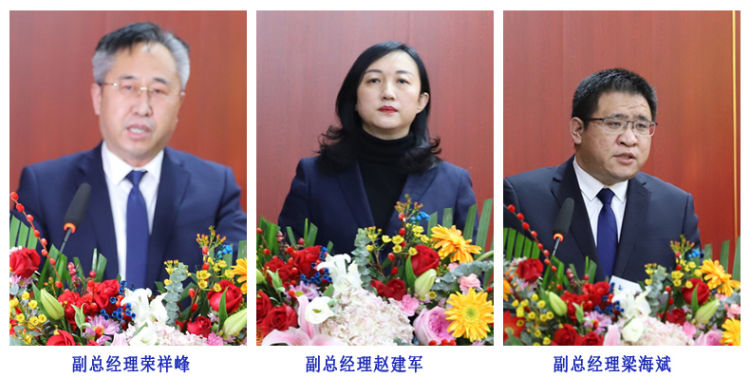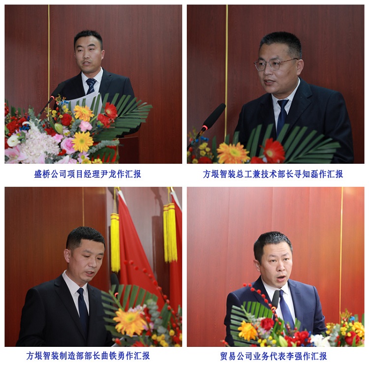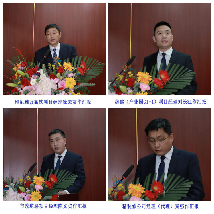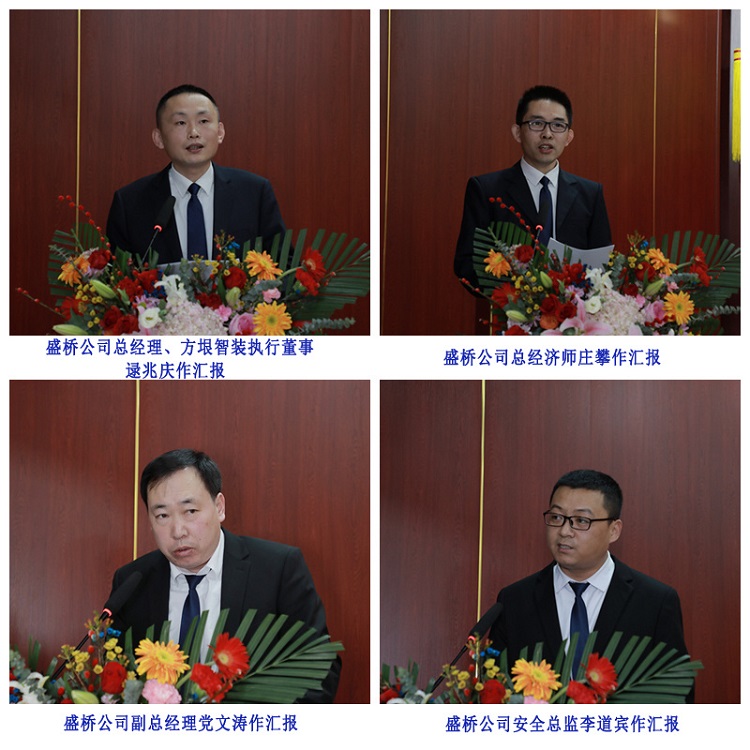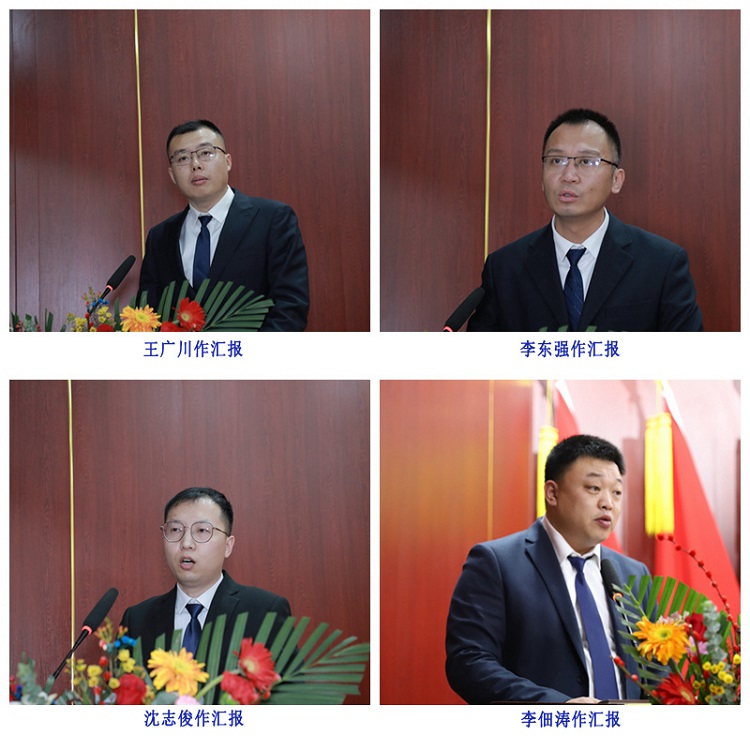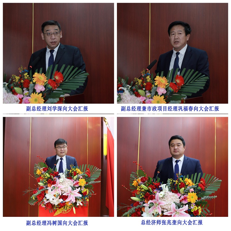 集团副总经理刘学深、荣祥峰、巩福春、赵建军、冯树国、梁海斌,总经济师张兆奎,总经理助理逯兆庆、张宗志、朱玉国,集团所属各单位主要负责同志及高管,各项目、部门代表,新入职干部员工代表分别作述职工作汇报和表态发言。