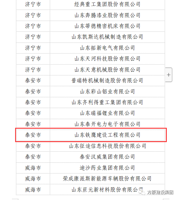近日,山东省工业和信息化厅组织开展了山东省首批先进中小企业评选工作,经过企业自主申报、各市推荐、专家评审、征求有关部门意见等程序,公海赌赌船官网jc710集团山东铁鹰建设工程有限公司凭借卓越的业绩、雄厚的技术实力、优秀的管理团队、良好的社会声誉成功入选山东省先进中小企业名单。