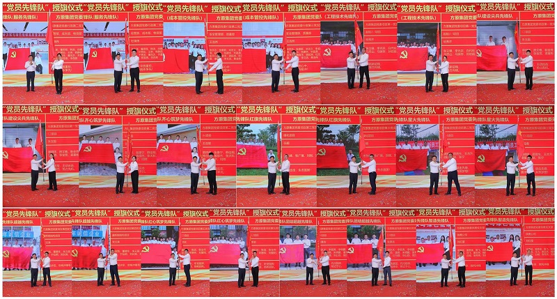 党委书记、董事长杨明波和党委委员为荣获“党员示范岗”的 69名党员授牌