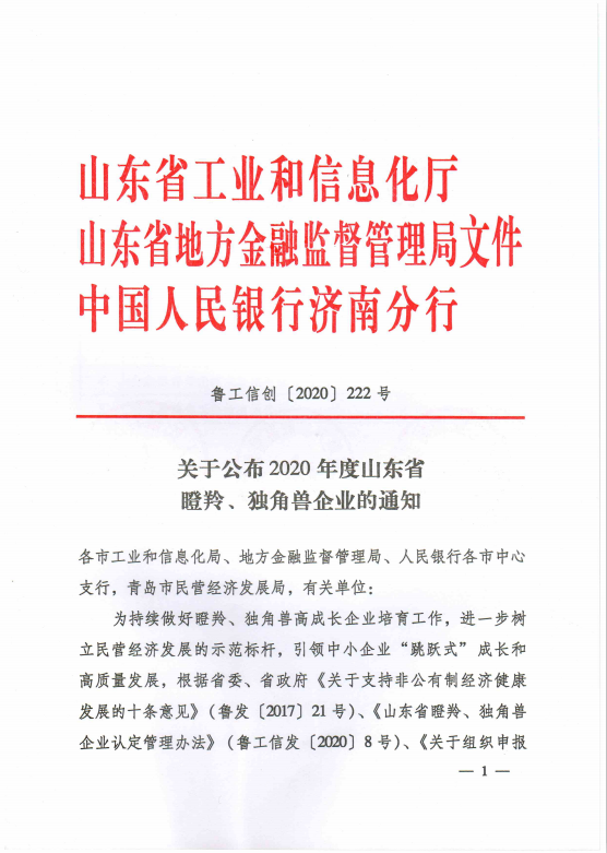 2020年度山东省瞪羚企业名单由山东省工信厅牵头组织开展评选,经企业自愿申报、各市中小企业主管部门推荐、专家评审、第三方信用评级、尽职调查、联合终审等程序,共确定了372家企业。其中,山东铁鹰建设工程有限公司在公布的瞪羚企业名单内。瞪羚企业具有成长速度快、创新能力强、专业领域新、发展潜力大的特征通过推出新产品、提供新服务、应用新技术、拓展新市场、创建新模式或构建新业态等方式,实现高速成长。瞪羚企业已然成为区域经济发展的晴雨表、创新发展的新引擎。2020年入选的山东省瞪羚企业主要是以面向市场主体,加强示范带动,以发展新技术等为方向,以智能制造、工业强基等为重点,着力打造新标杆、培育新动能、引领新跃升,助力推动新旧动能转换和经济高质量发展。