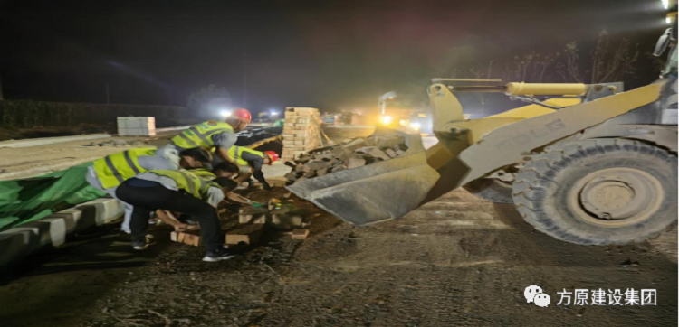 7月26日,项目部又接到新的工期任务,要求8月底道路全断面完工,同时又新增河道护砌等工作。这让项目部感到前所未有的压力,在公司领导的帮助及支持下,项目部又迅速做出新的调整,开启了抢工模式,进入了24小时抢工状态!