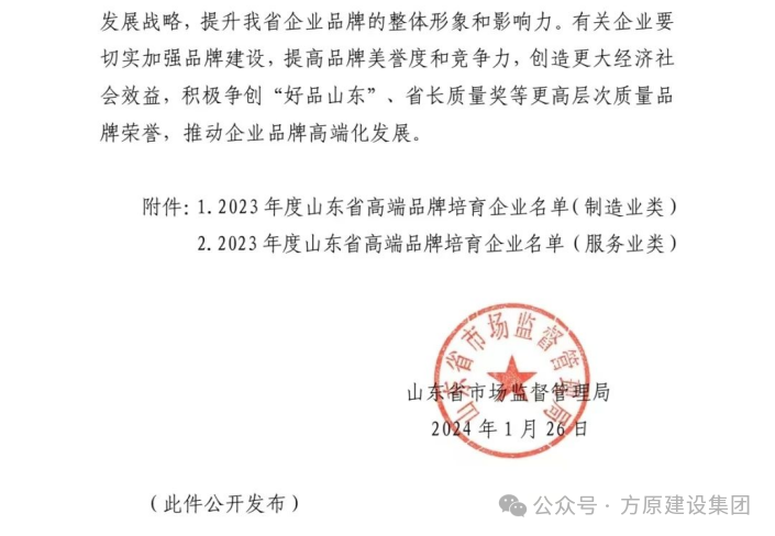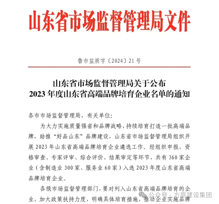 近日,山东省市场监督管理局公布了2023年度山东省高端品牌培育企业名单。经组织申报、资格审查、专家评审、综合评价、结果审定等环节,公海赌赌船官网jc710集团山东铁鹰建设工程有限公司经过激烈的角逐成功入选。