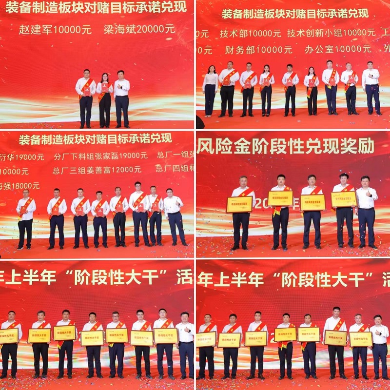 第二章节:表彰兑现大会(第一环节:装备制造板块表彰兑现;第二环节:工程施工板块表彰兑现;第三环节:人才培养贡献表彰兑现环节;第四环节:“党员示范岗”、“党员先锋队”、“青年突击队”授牌和授旗仪式。)